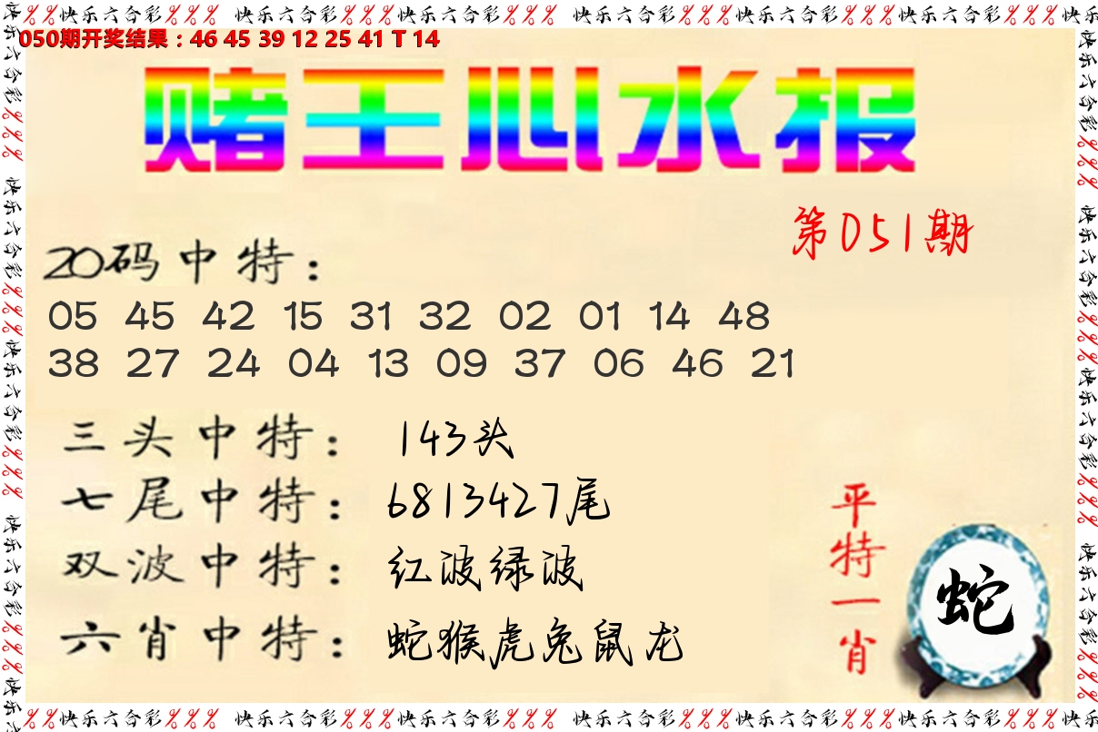 050期:两波中特蓝波红波开:14蛇准